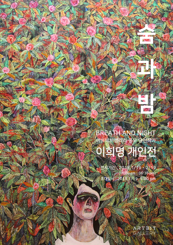 이번 전시에서는 살기 위해 벌어지는 욕망의 덩어리인 ‘숨’과 관조적 성찰로 대변되는 ‘밤’ 사이에 벌어지는 간극을 표현하고자 했다. 특히, 최근의 회화 작업에서는 생명력의 집합체인 자연과 홀로 남겨진 인간 사이에서 벌어지는 이미지의 조합과 충돌을 의도하며, 고독과 연민의 틈새에서 방황하는 자화상과 발자국을 담아내고자 하였다. 현실적 위선과 이상적 반성이 첨예하게 대립하는 불협화음을 통해, 이기적인 태도로 점철되었던 삶에 대해 그린 일종의 반성문, 혹은 여러 가지 개별적 스토리들로 응축된 관찰 일기와도 같은 작품들을 그려내고자 하였다. 그리고 이러한 시간의 덩어리들에 대한 직면은 인간이기에 꼭 찾아야할 진심과 진실, 희망의 여정이라 생각한다.